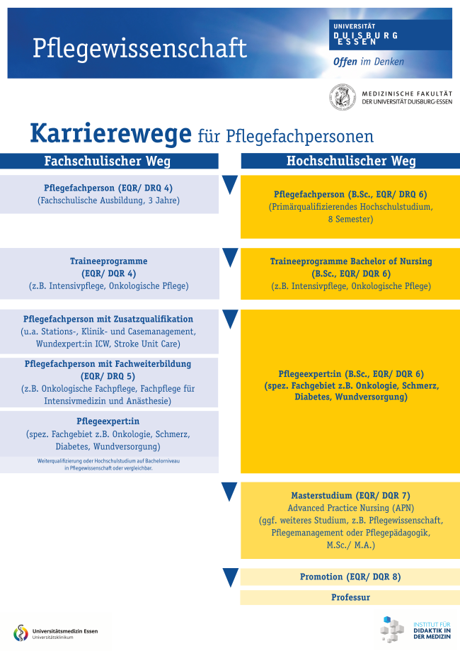 Die Gesundheitsversorgung steht vor immer komplexeren Herausforderungen. Der wissenschafts- und praxisgerichtete Studiengang der Universität Duisburg-Essen (UDE) - in etablierter Kooperation mit dem Universitätsklinikum Essen (UKE) - bietet dafür eine wegweisende Antwort. Jährlich zum Wintersemester startet unser duales, primärqualifizierende und evidenzbasierte Studium, das Pflegefachpersonen optimal auf die Anforderungen der (inter-)professionellen Gesundheitsversorgung vorbereitet.